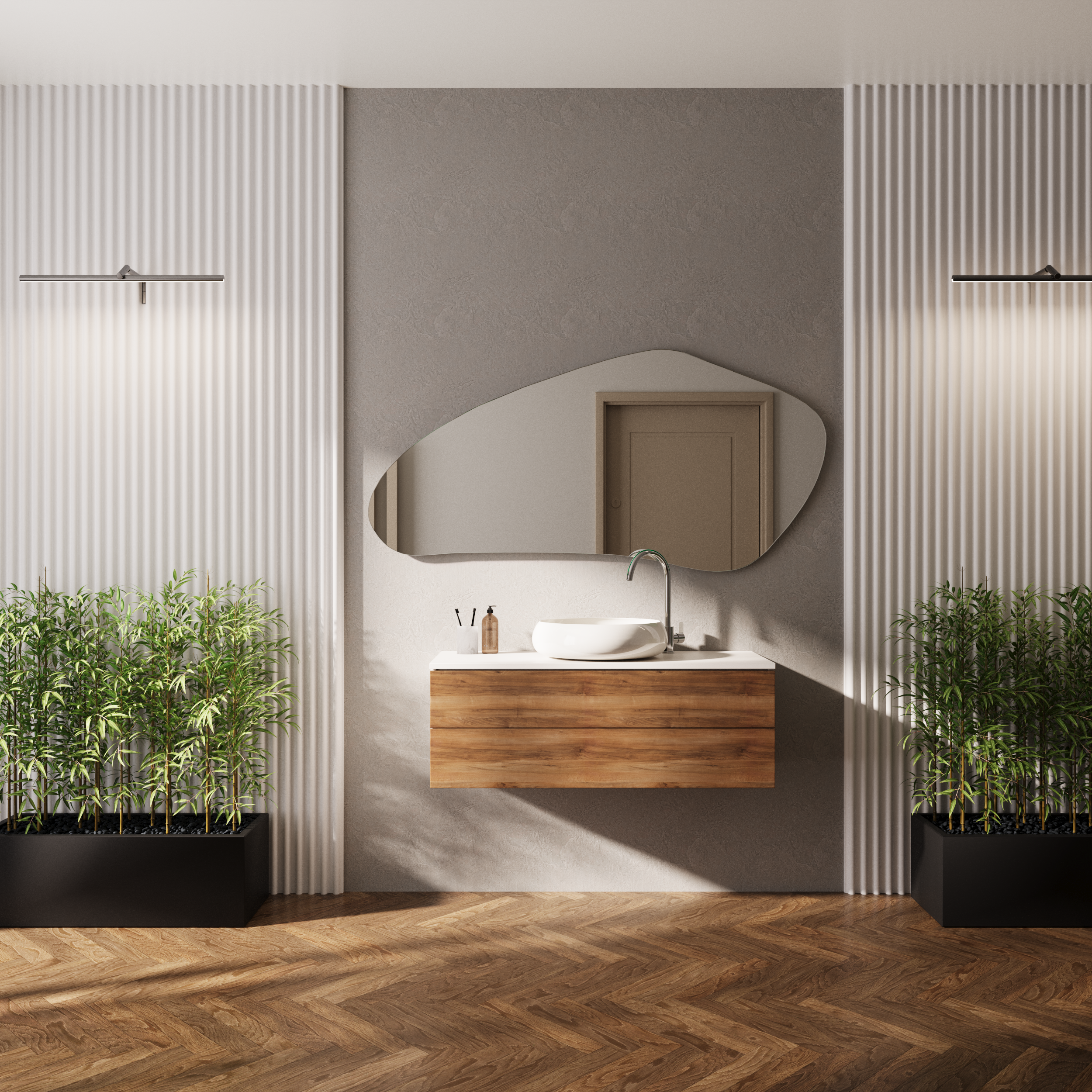Ob im Eingangsbereich, über einem Waschtisch im Bad, im Schlafzimmer oder als zentrales Element im Wohnzimmer – der "Fluid Shape" Spiegel passt sich nahtlos verschiedenen Einrichtungsstilen an. Er harmoniert perfekt mit minimalistischen, skandinavischen oder modernen Interieurs und setzt einen spannenden Kontrast in klassischer oder industrieller Umgebung.