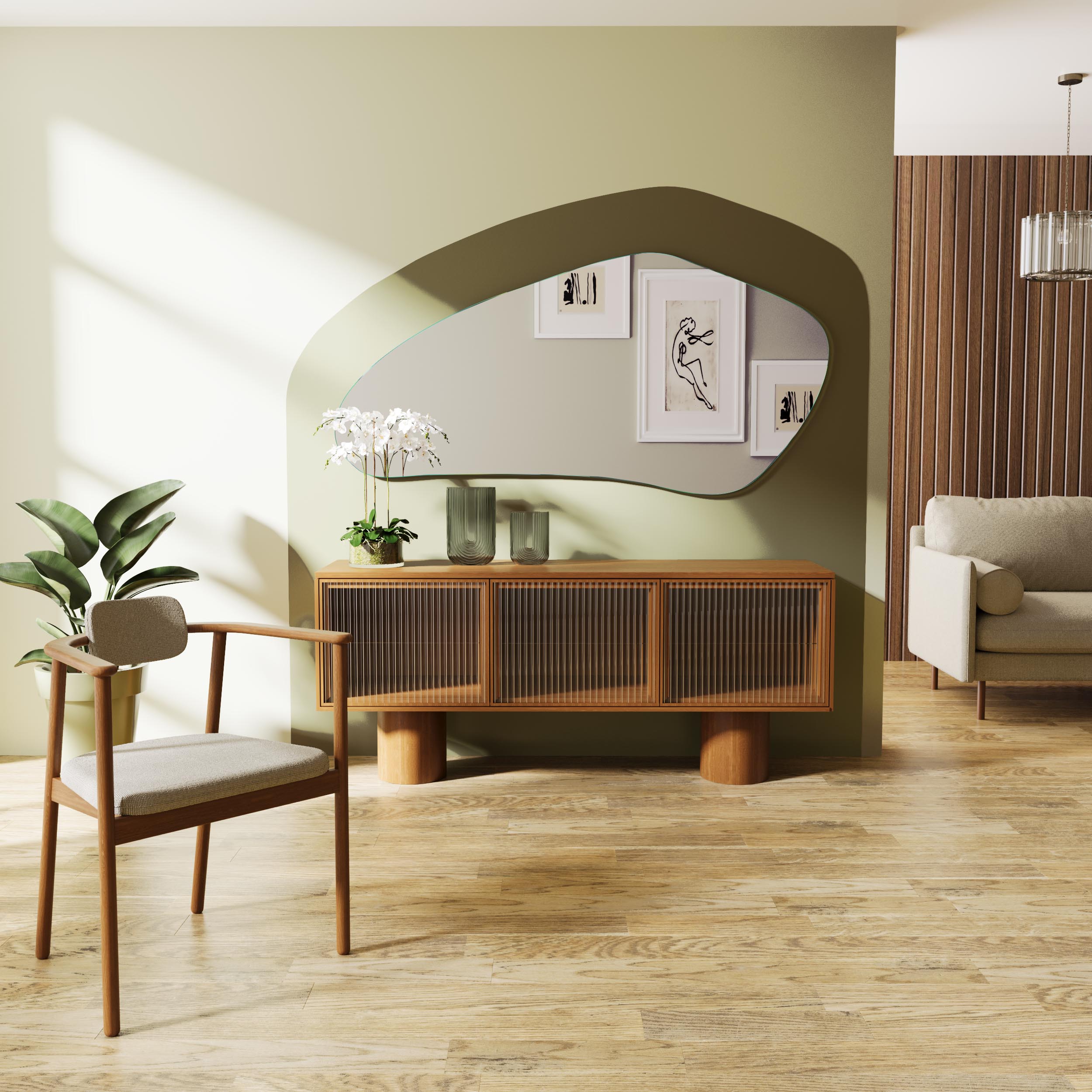 Verwandeln Sie Ihren Raum in eine Galerie – mit dem asymmetrischen Wandspiegel "Atlin ASM"!