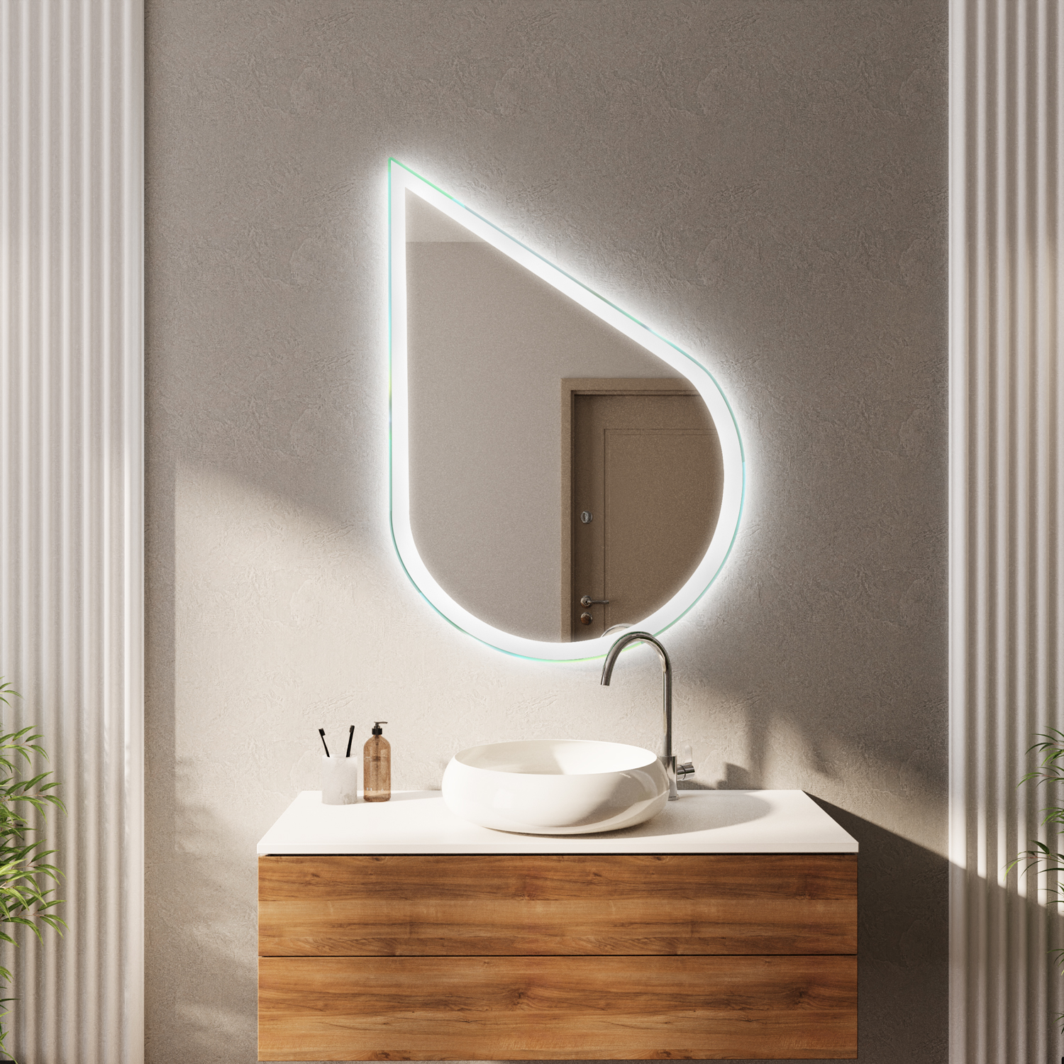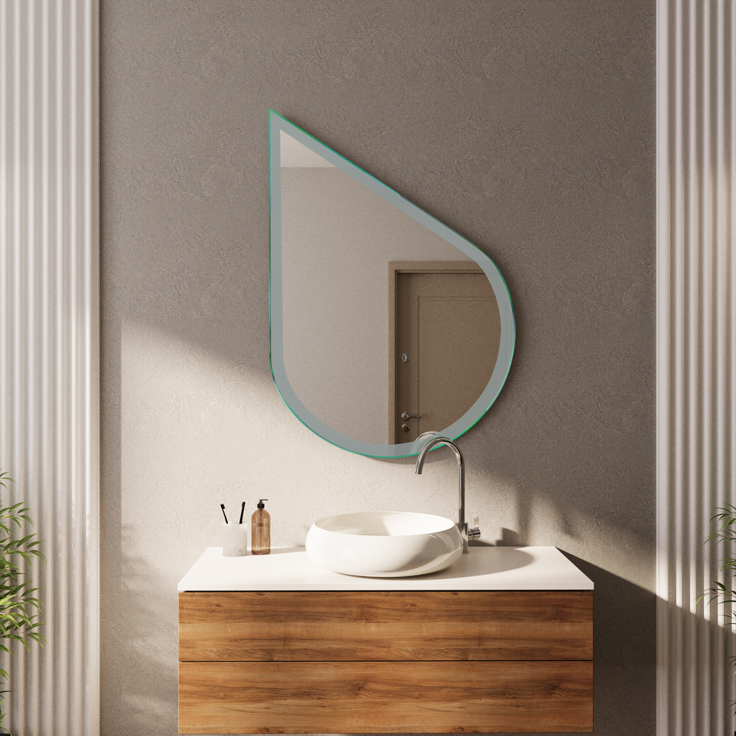 Die asymmetrische Tropfenform setzt einen außergewöhnlichen Akzent und bringt visuelle Leichtigkeit in Ihre Einrichtung.