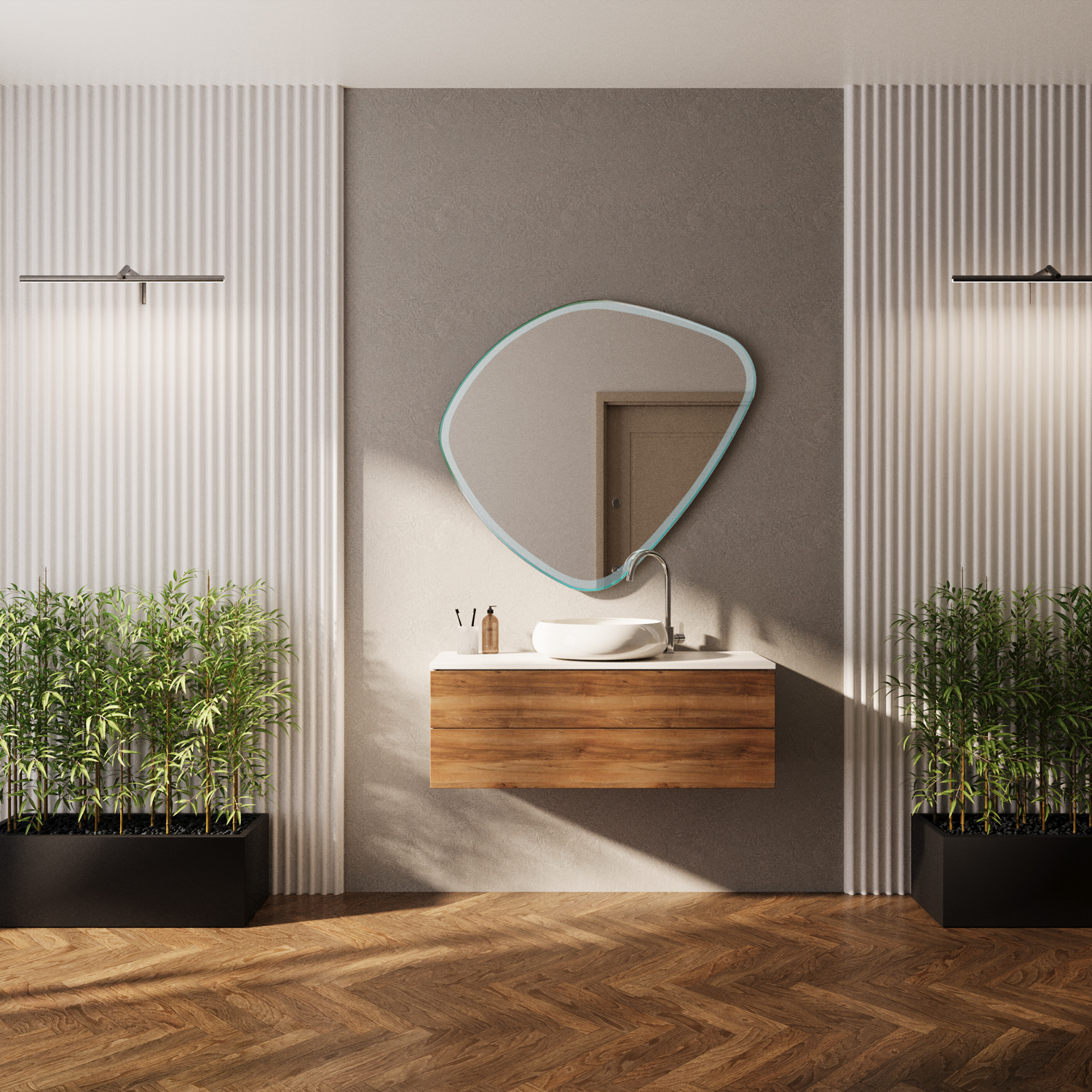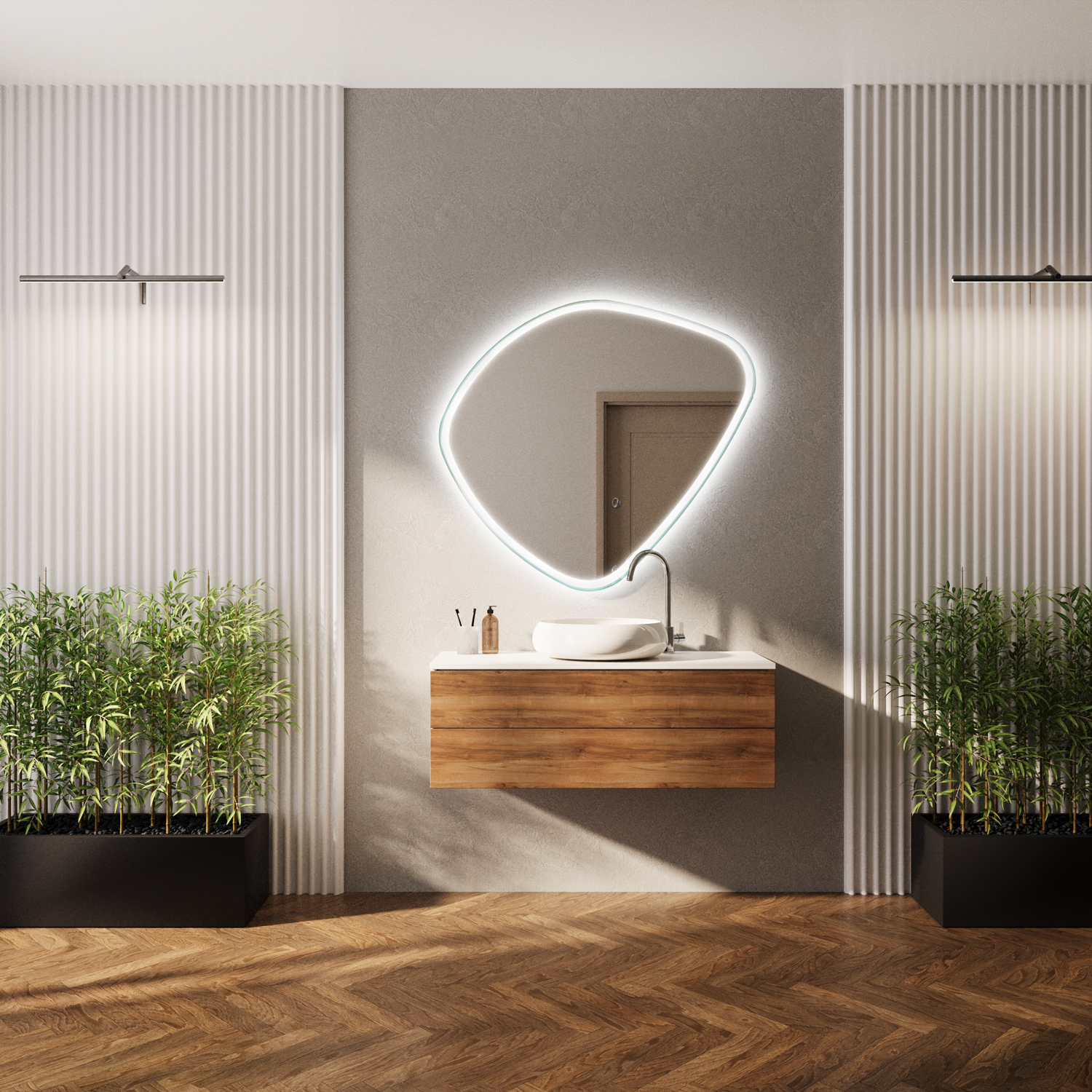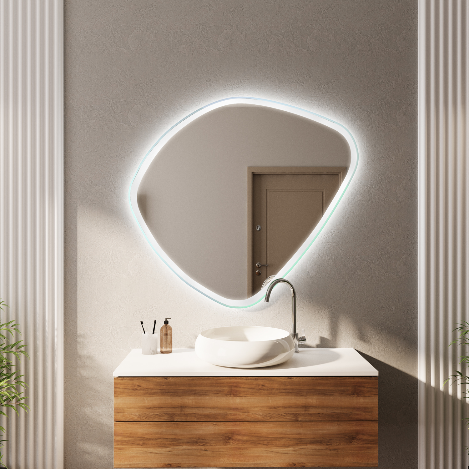 Der Kluane-3 ASM überzeugt durch sein außergewöhnliches, asymmetrisches Design und setzt moderne Akzente in jedem Raum. Die organische Form mit sanft geschwungenen Linien verleiht dem Spiegel eine stilvolle Leichtigkeit und macht ihn zum Blickfang in Bad, Flur oder Ankleide.