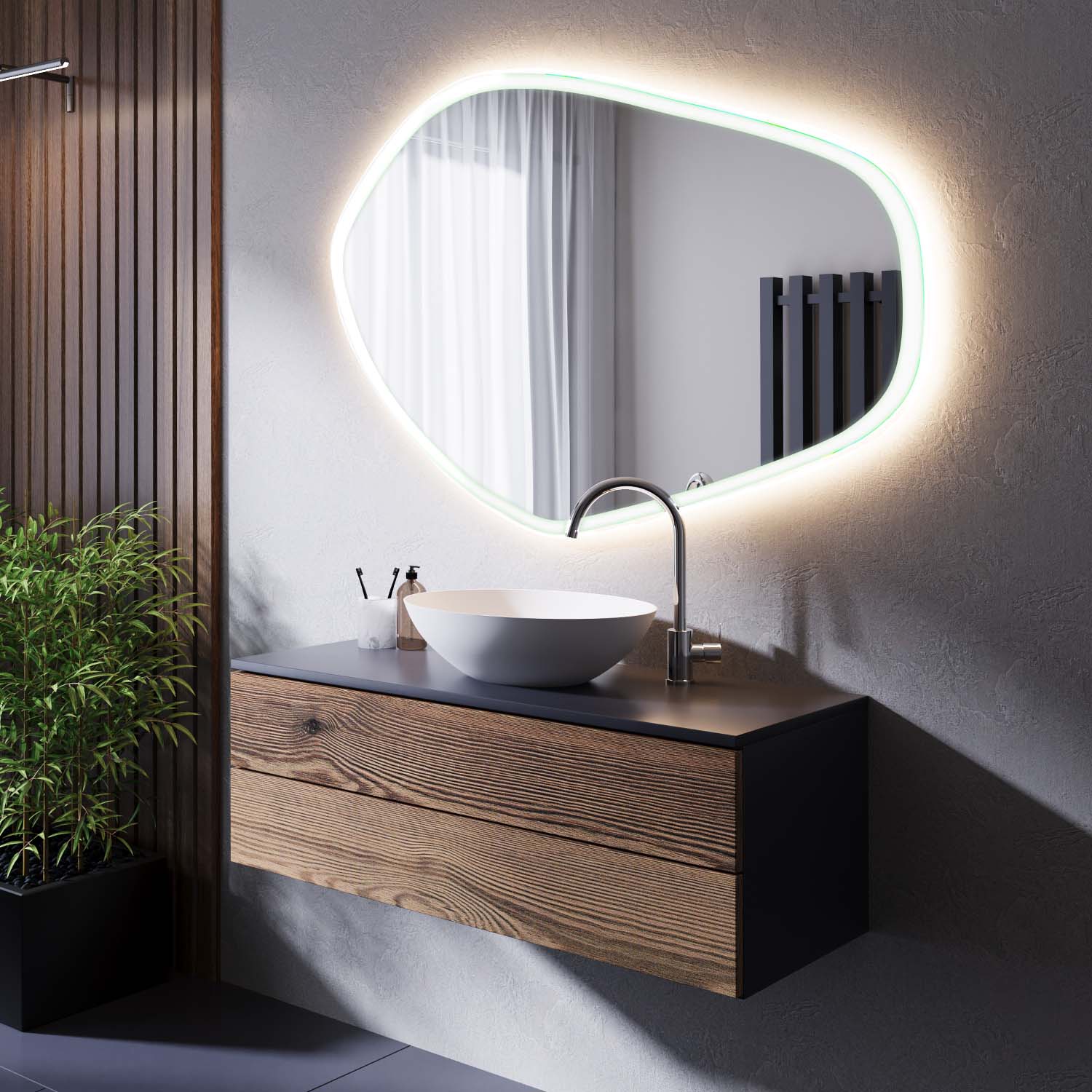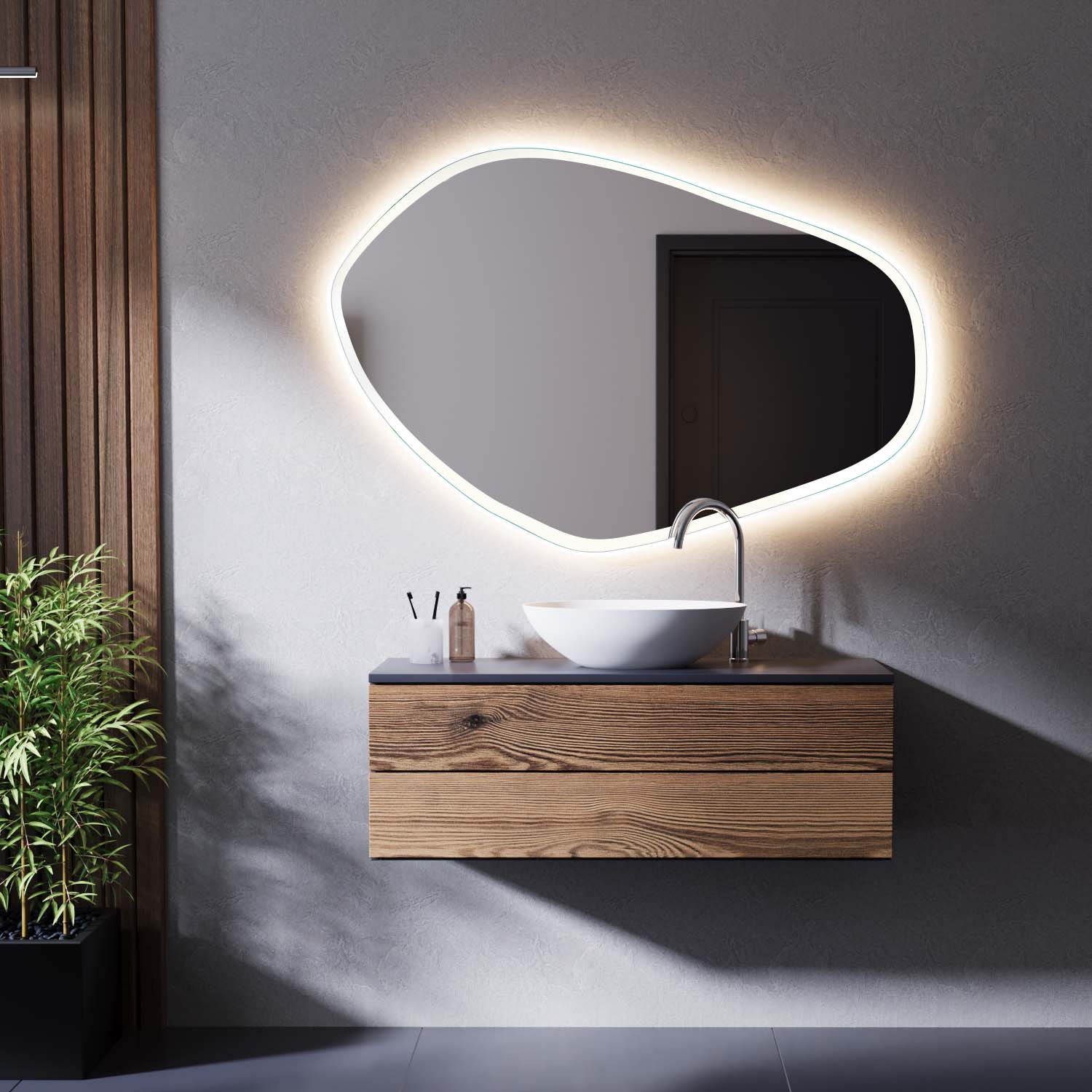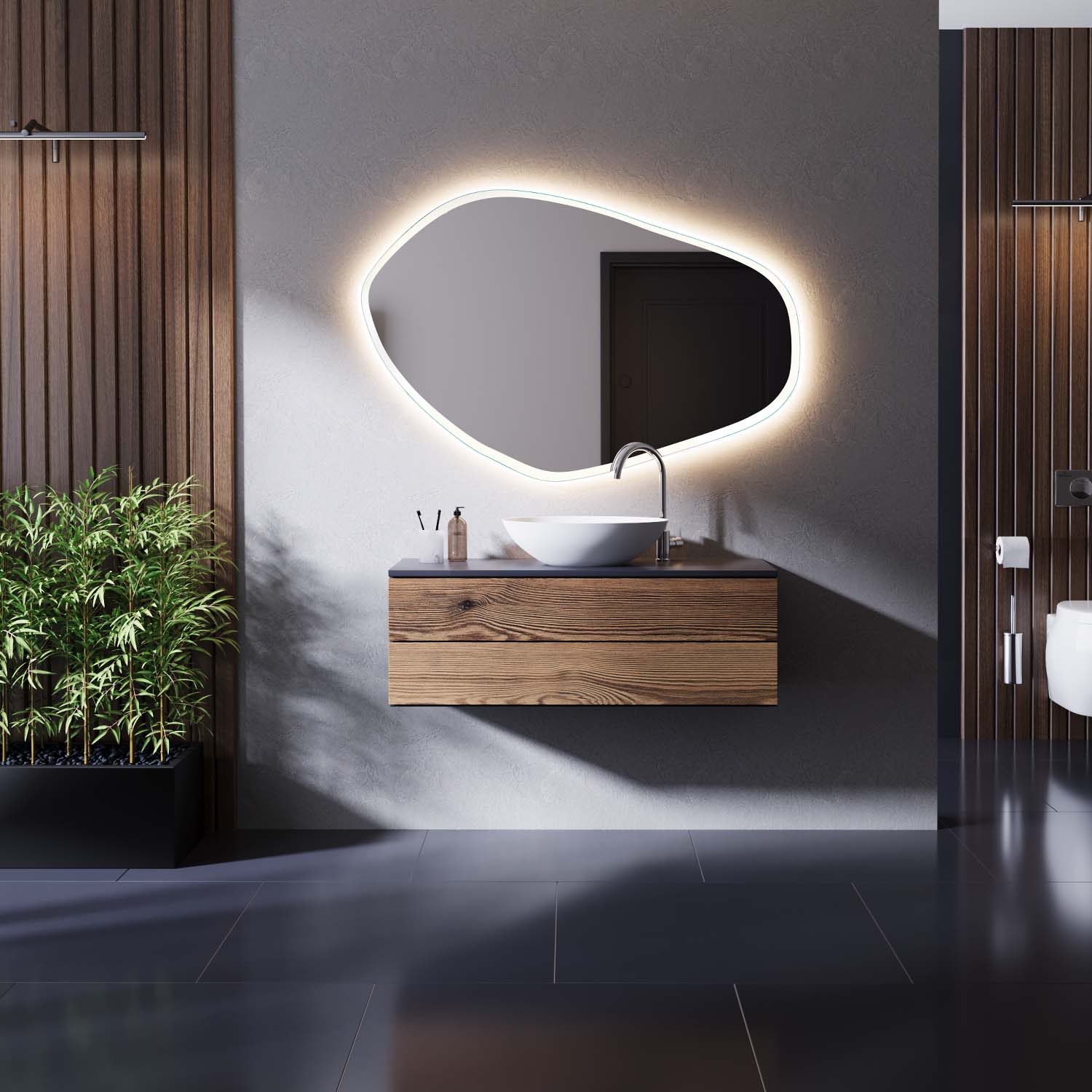Die organisch geschwungene Kontur des Moraine-3 ASM setzt bewusst auf Asymmetrie – für ein Ambiente, das Individualität und Stilbewusstsein ausstrahlt.