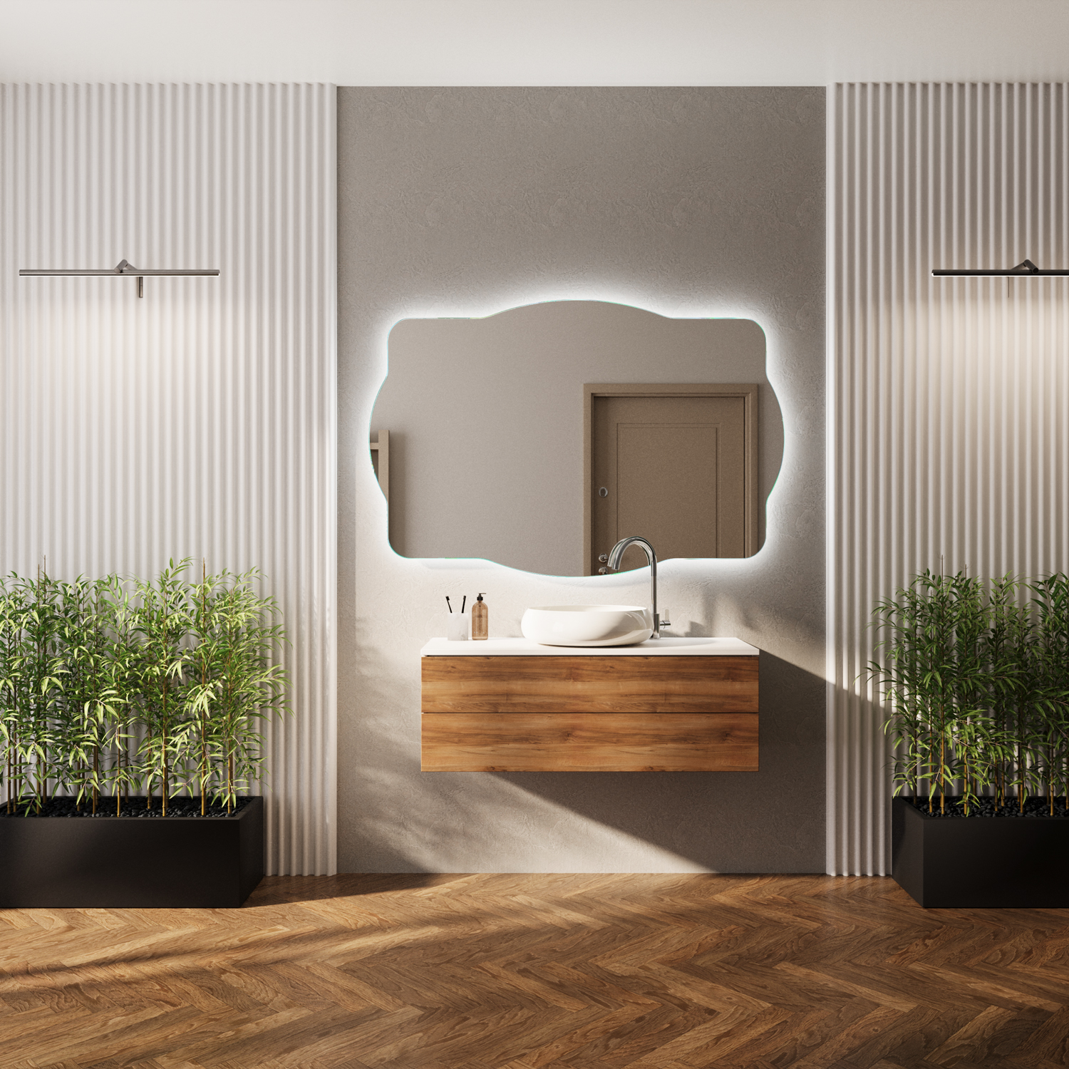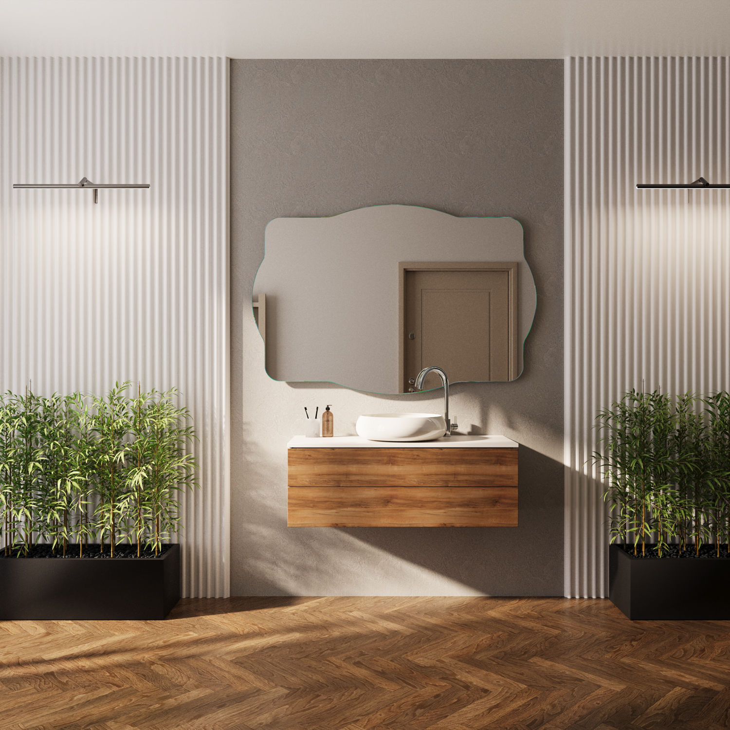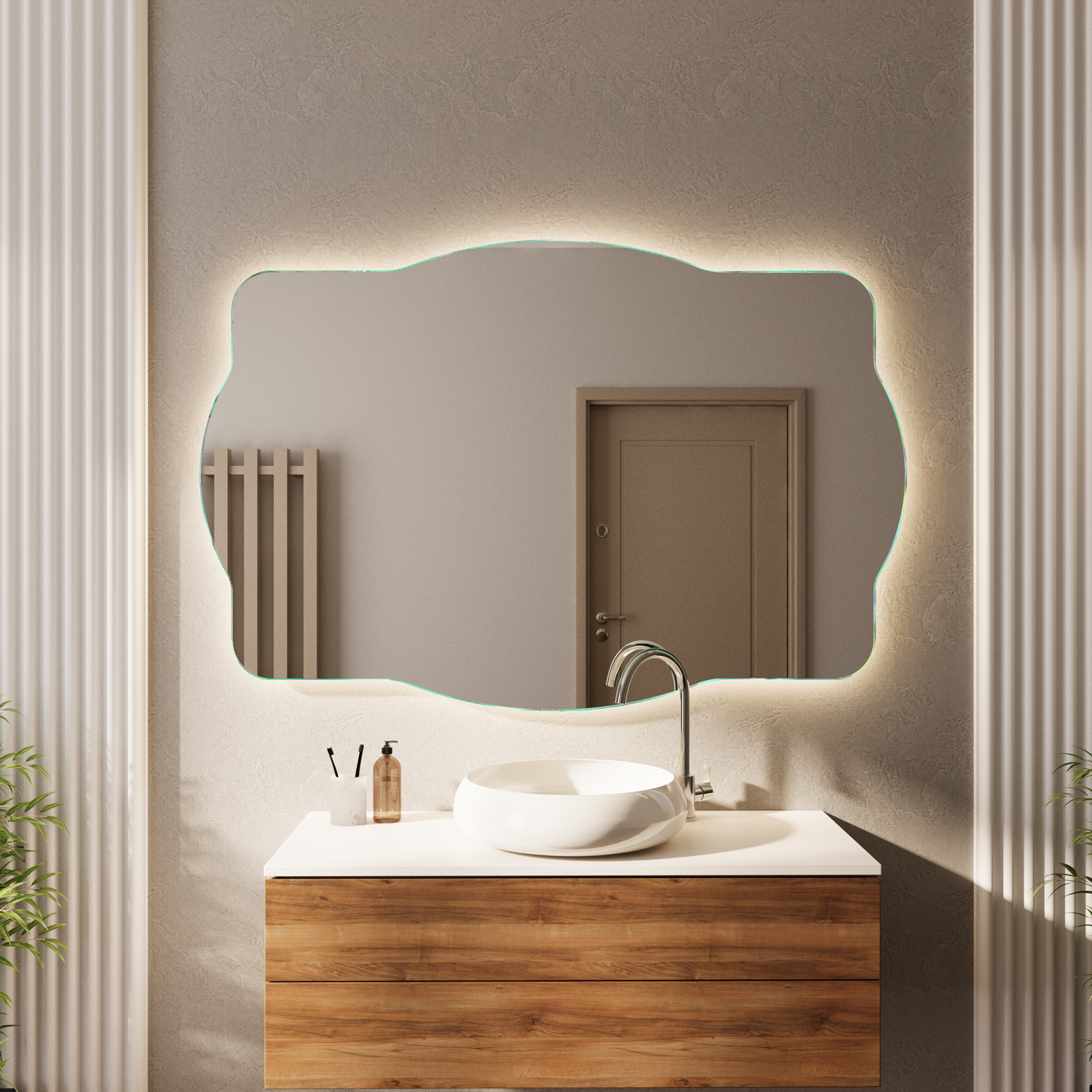 Die asymmetrische Silhouette erinnert an natürliche Formen und verleiht dem Spiegel eine lebendige, fast künstlerische Ausstrahlung.