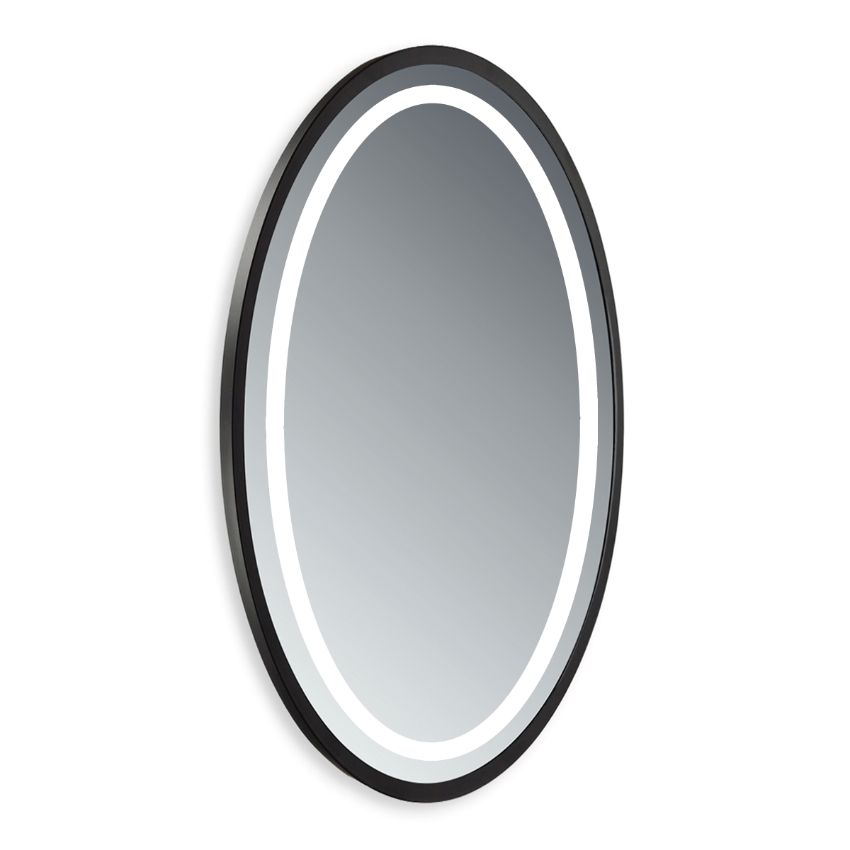 Der Wandspiegel Ellipse mit schwarzen Aluminiumrahmen präsentiert sich als edles Design-Highlight für Ihr Badezimmer in Form einer Ellipse (Oval). Mit großzügigen, satinierten Leuchtflächen rundherum bietet er einen eleganten Beleuchtungseffekt und sorgt für einen schönen Lichtausfall nach vorne und hinten zur Wand. Perfekt geeignet für Ihr morgendliches Styling oder den abendlichen Schminkvorgang, bietet er zusätzliche Extras wie ein extra helles doppeltes LED-Band, eine Digitaluhr und variable Lichtstimmungen für eine individuelle Atmosphäre.